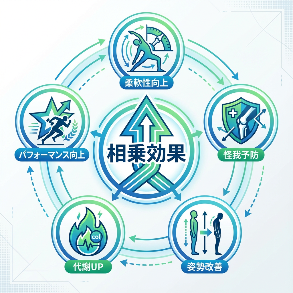 では、ストレッチとトレーニングを組み合わせると、どのような相乗効果が生まれるのでしょうか?
