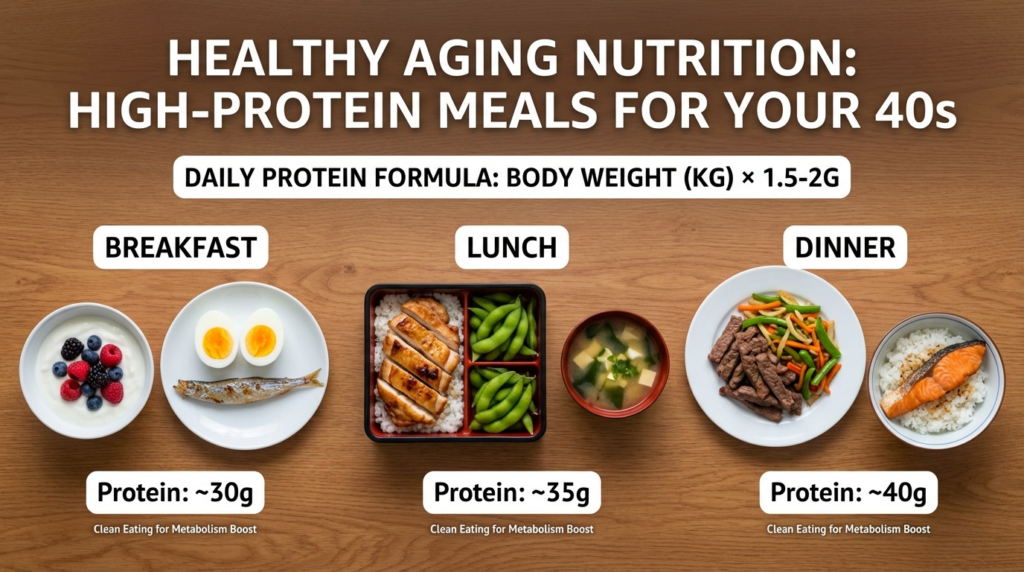 40代は、筋肉を維持・増やすためにタンパク質をしっかり摂ることが重要です。