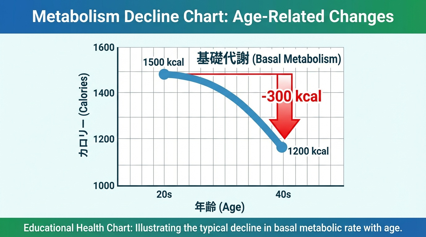 40代になると、基礎代謝は20代に比べて約20%も低下します。