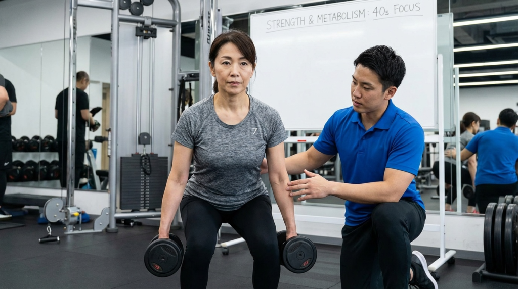 40代で最も重要なのは、筋トレで筋肉量を増やし、基礎代謝を上げることです。